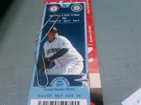 My work had a raffle for 4 Mariner’s tickets and a parking pass. We thought the tickets were back further than they were but ended up being THIRD ROW TV. SEATS!!!. Friends and Family could see us 🙂