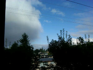 Rain clouds and sun, half and half in the sky! Make up your mind!