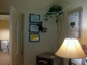 A great big spider built a web at AV! Even worse, I helped it.