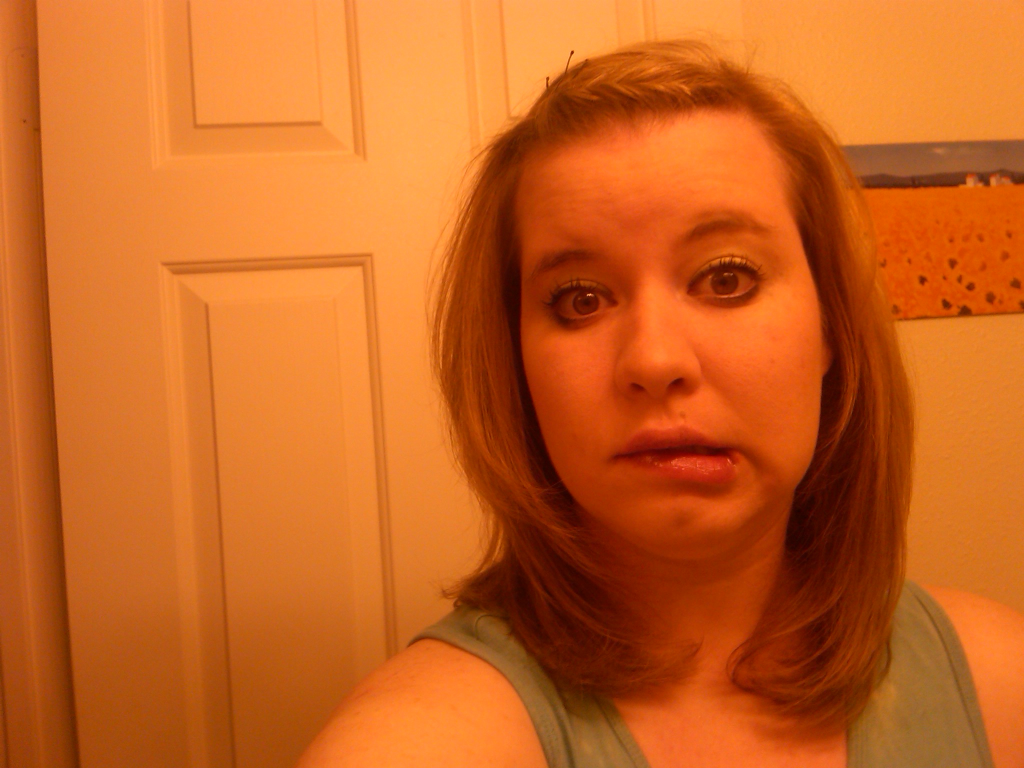 … At blow drying my hair with a round brush. I think it turned out pretty good. Now I just need to tame my bangs 😦