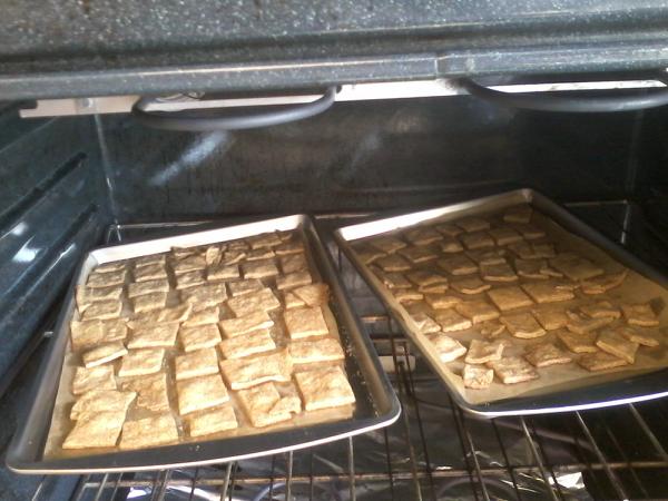 Note: This recipe made enough crackers for two baking sheets. I baked them separately, but I am sure you could bake them at the same time as long as you rotate the pans half way through.