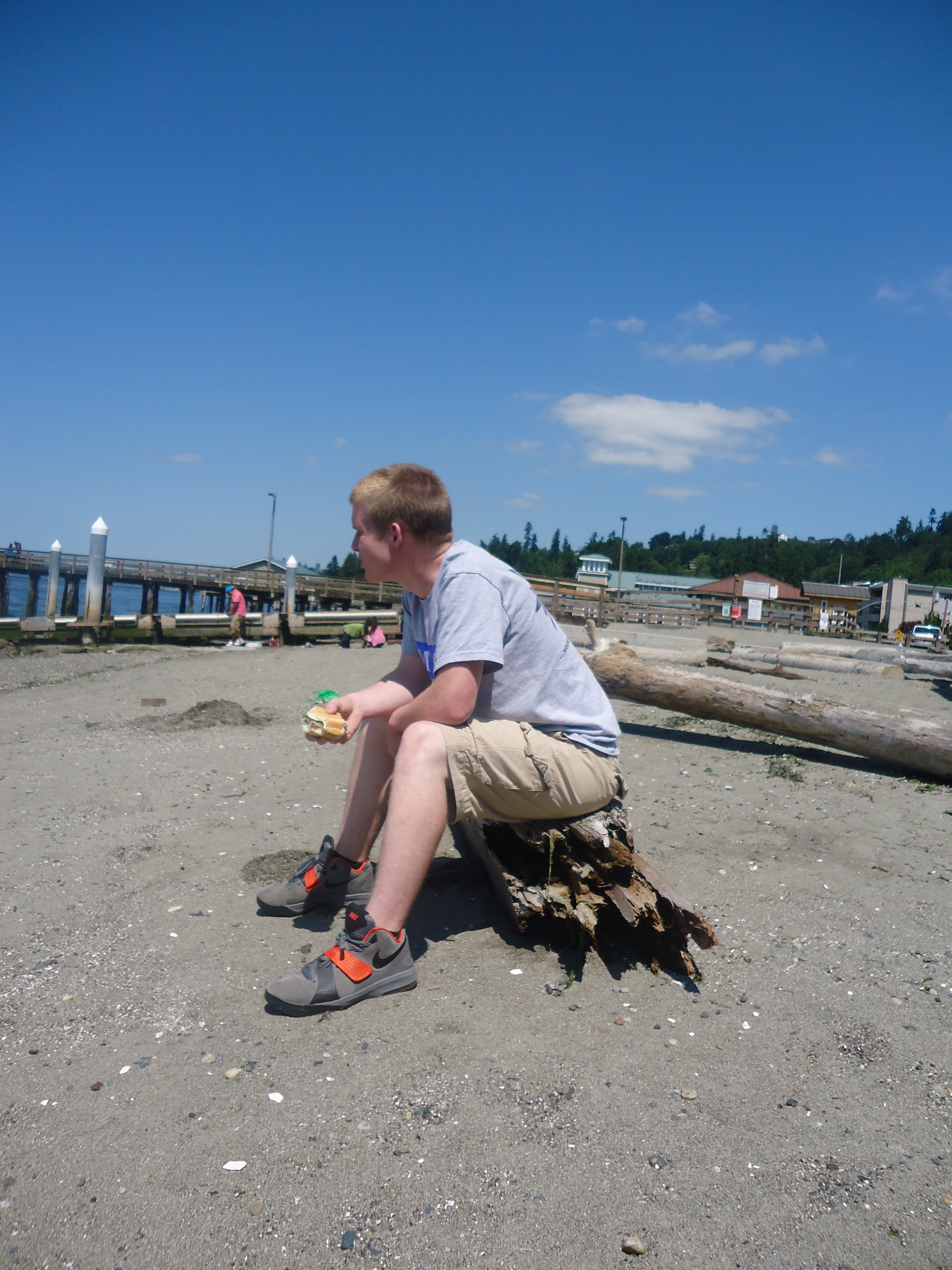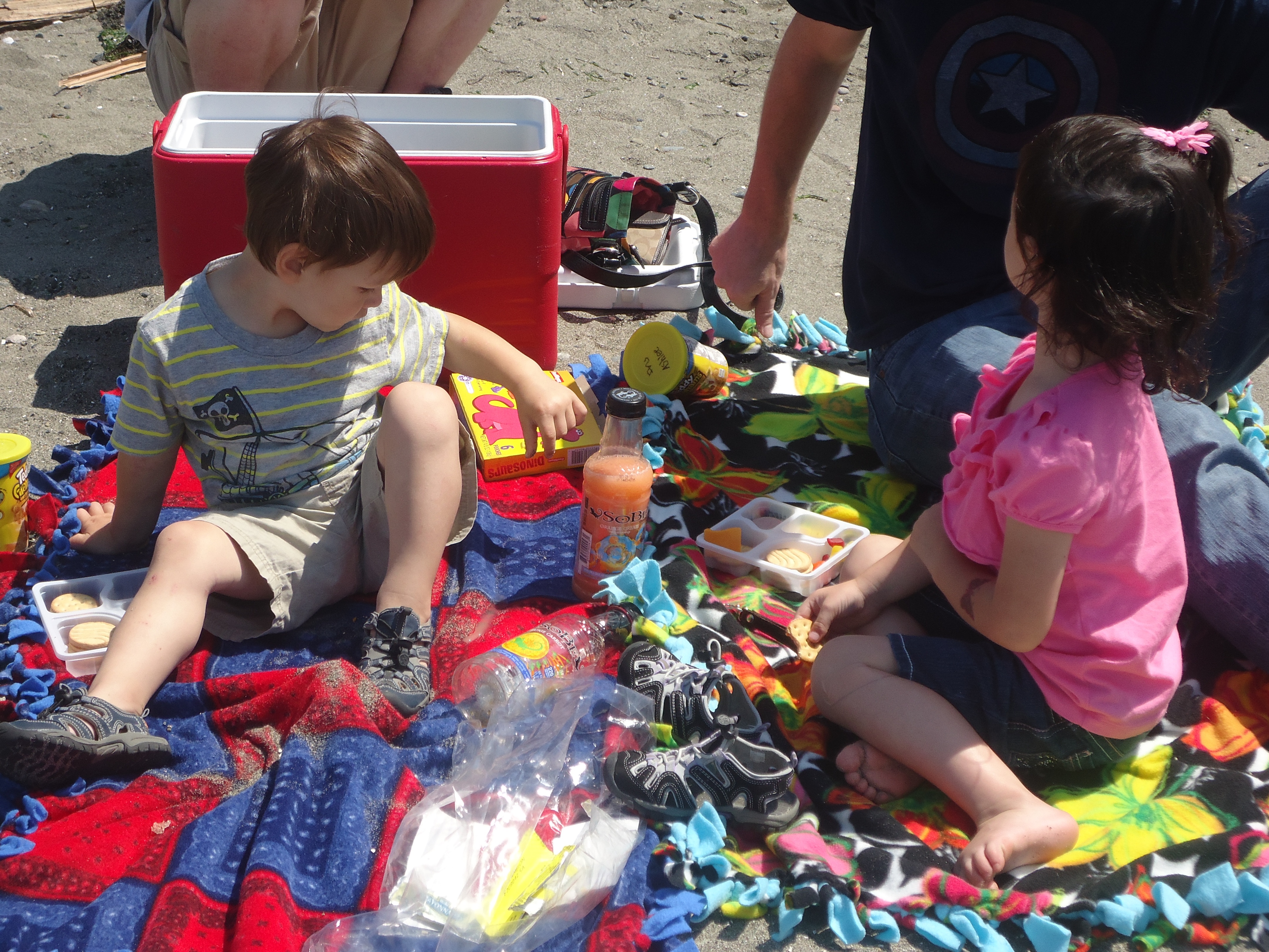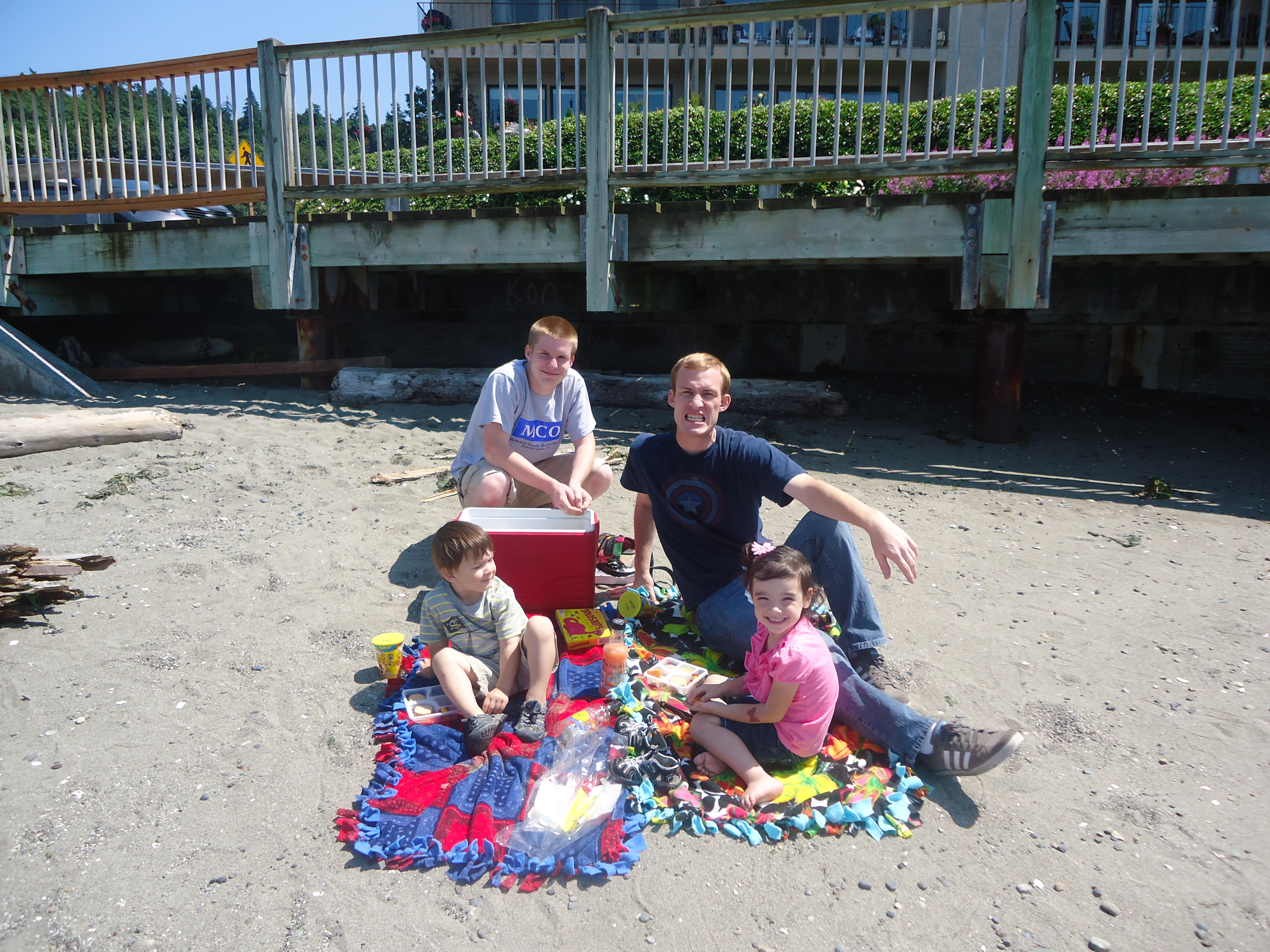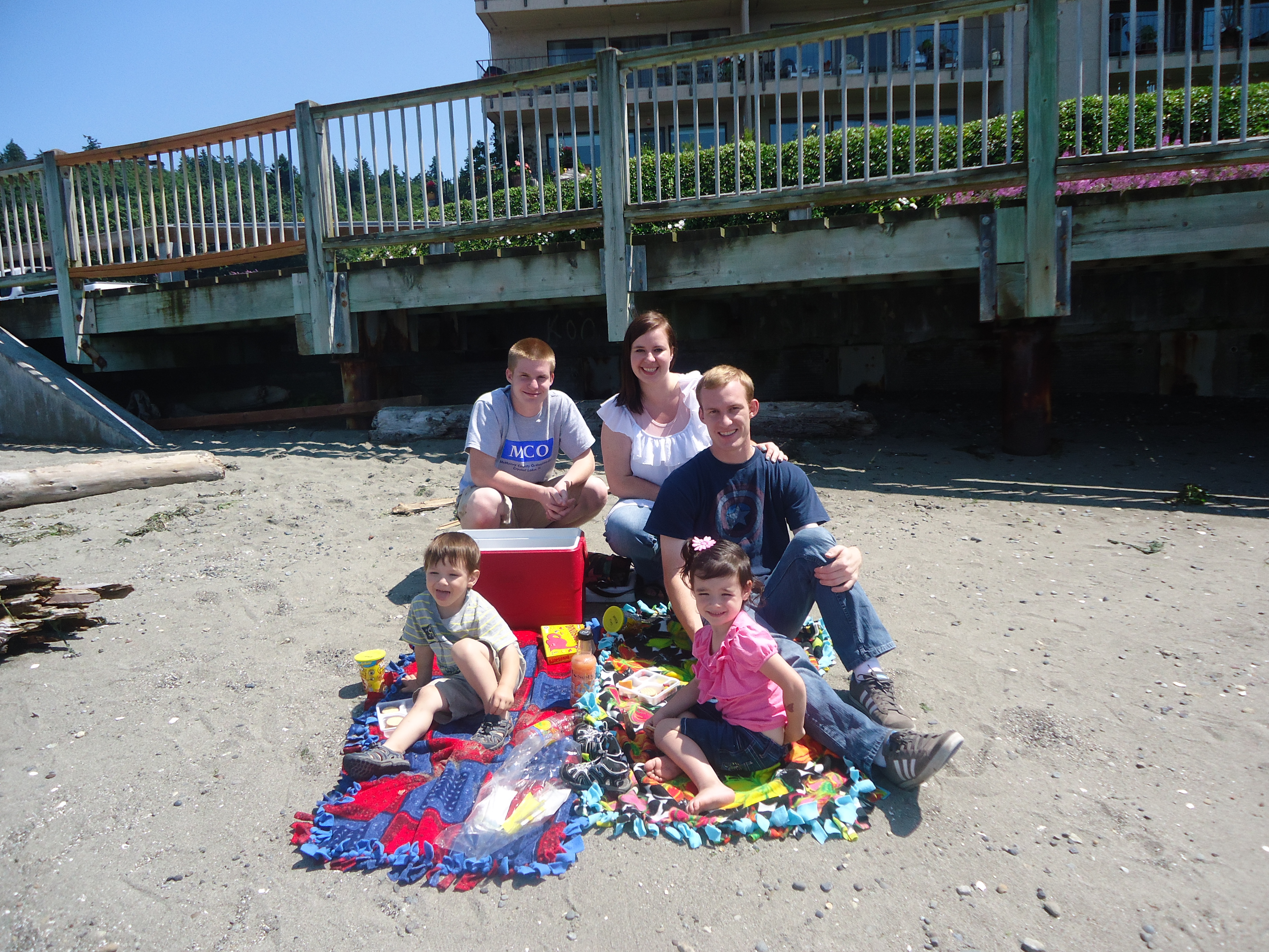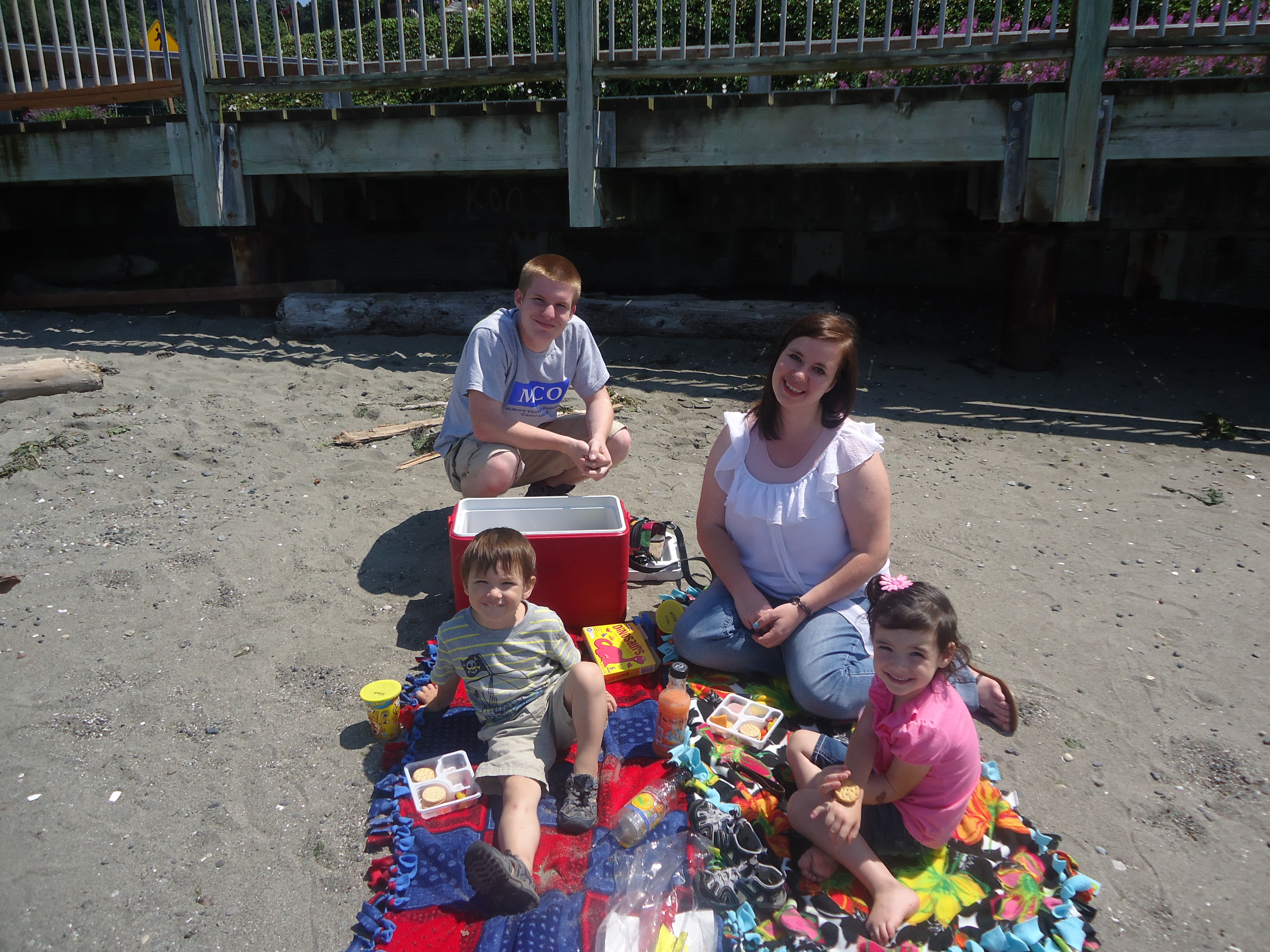 Chris needed to do some shopping so we took A and E with us and loaded all in my car for a day out. Poor Jonny had to be squeezed in between the two car seats! We did the shopping and then headed to Redondo Beach in Federal Way, WA for a picnic lunch. It was a fun little outing. On the way to take Chris to Kent, Big Bubs and Ashlee zonked out…. poor kiddos! I love my family! It is still weird not being at work. Serious withdrawals!