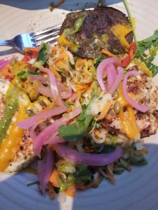 Instead of chicken fried chicken I had this mess of grilled chicken, vegetables and a portobello mushroom. I am sure the waiter thought I was annoying as I asked him the ingredients in everything but I knew he understood because when I ordered my water in the beginning, he told me about how carefully he was trying to eat and how he was also not allowed dairy or sugar.