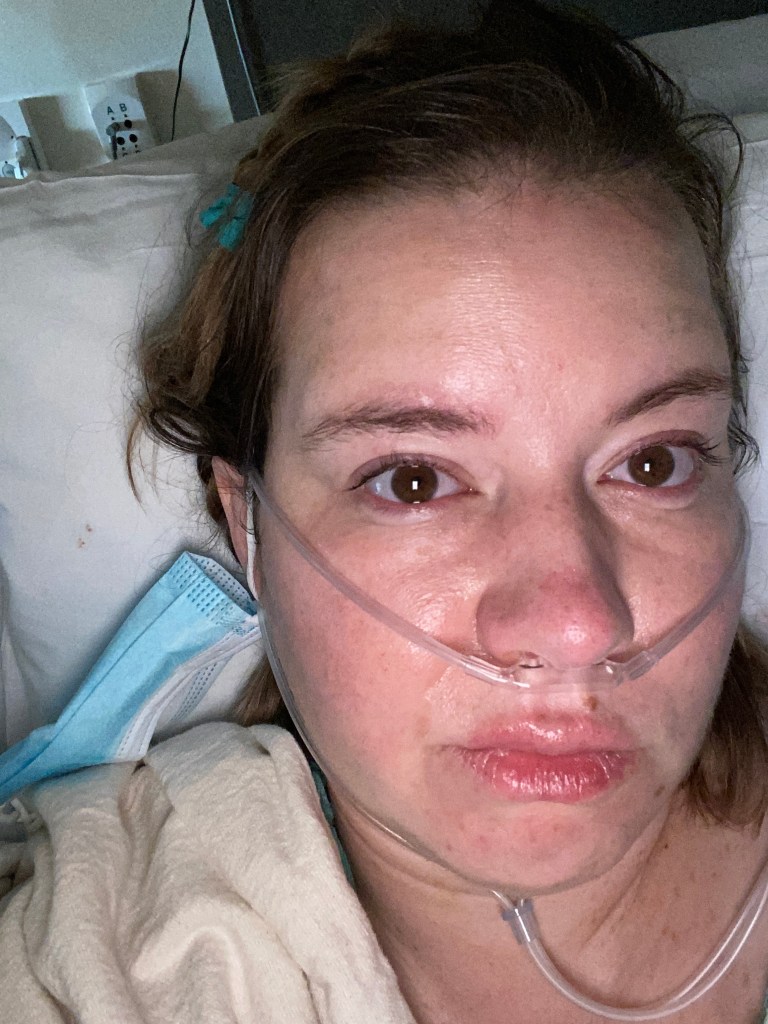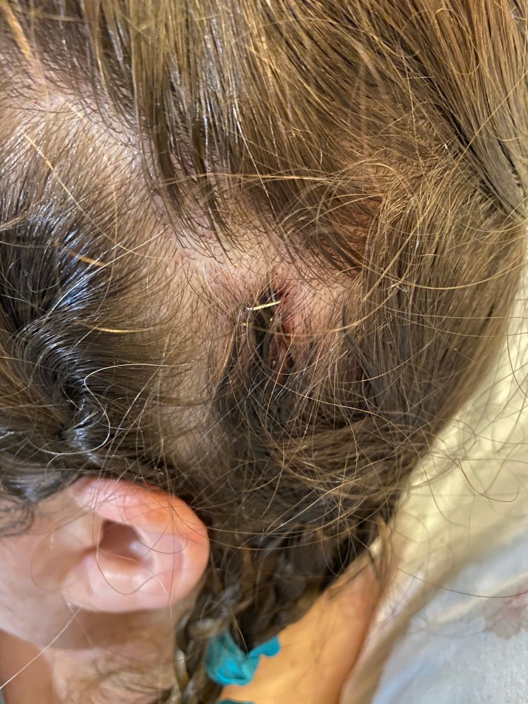 I asked if I could have my phone and the nurse said it would be about 5 hours before they could bring it AND I could only dial numbers that were local. I tried calling my grandma to talk to my aunt and let my parents know I couldn’t call. My grandma couldn’t hear me with my sore throat from the breathing tube. I tried calling my boss to have her tell my mother, but the nurse came in so I hung up. I just wanted to sleep and cry. I needed help to turn in bed and even pour myself ice and water. I kept dropping the ice down my hospital gown because I couldn’t aim or lift the spoon. So while I waited for hours to be able to communicate with family I slept and took lots of naps. I counted the number of cotton balls from IV pokes and wondered in the 3 seconds I felt I had slept how they shaved my head, inserted a catheter, placed new IV lines, braided my hair in six ridiculous looking braids and opened my head. I ordered dinner, grilled cheese and chicken noodle soup. It turned to paste in my mouth and I could not eat. It made me so nauseated. Around 7pm I got my phone back but visiting hours were over. And I was too emotional to even FaceTime my family. Around 7:15 they got me up for a walk and then back to bed I went where I could stomach fresh fruit, meds and actually could start turning myself in bed. I mean it took about 15 minutes but I did it. Every three hours throughout the night they woke me up to make sure I was okay. At one point my monitors were going crazy and I dropped my call button and had no way of getting a hold of them or finding the call light. I finally called the operator and just needed oxygen put back on. The past couple nights I keep checking my O2 stats as they are ranging between 88-91% while I sleep. That is all I can really remember from day one.